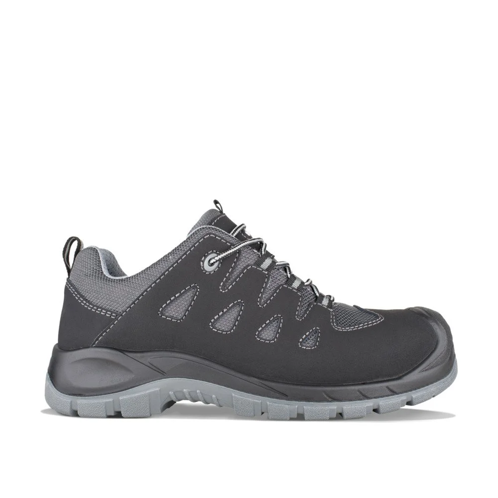 Lekkie i elastyczne półbuty robocze bez elementów metalowych do wymagających zadań. Wykonane z gładkiej skóry połączonej z materiałem Cordura. Wyposażone w odporną na oleje, antypoślizgową podeszwę z poliuretanu, kompozytowy podnosek oraz wkładkę antyprzebiciową.